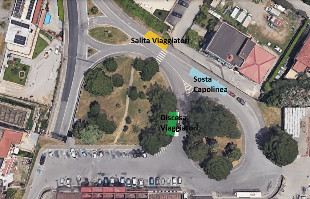 Considerata la comunicazione pervenuta da parte di Rete Ferroviaria Italiana S.p.A. avente ad oggetto lavori per la “riqualifica del complesso di stazione di Sarno”, si rende noto all’utenza che a far data dal 19 gennaio 2026 e sino al termine dei lavori (termine stimato in circa 10 giorni) le corse che effettuano arrivo, partenza e capolinea presso la Stazione FS di Sarno (SA) effettueranno “salita viaggiatori”, “discesa viaggiatori” e “sosta capolinea” nei punti indicati nell’immagine che segue: